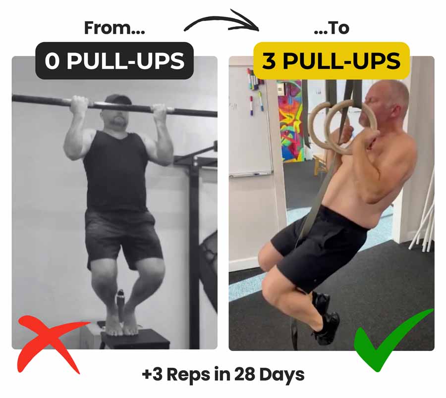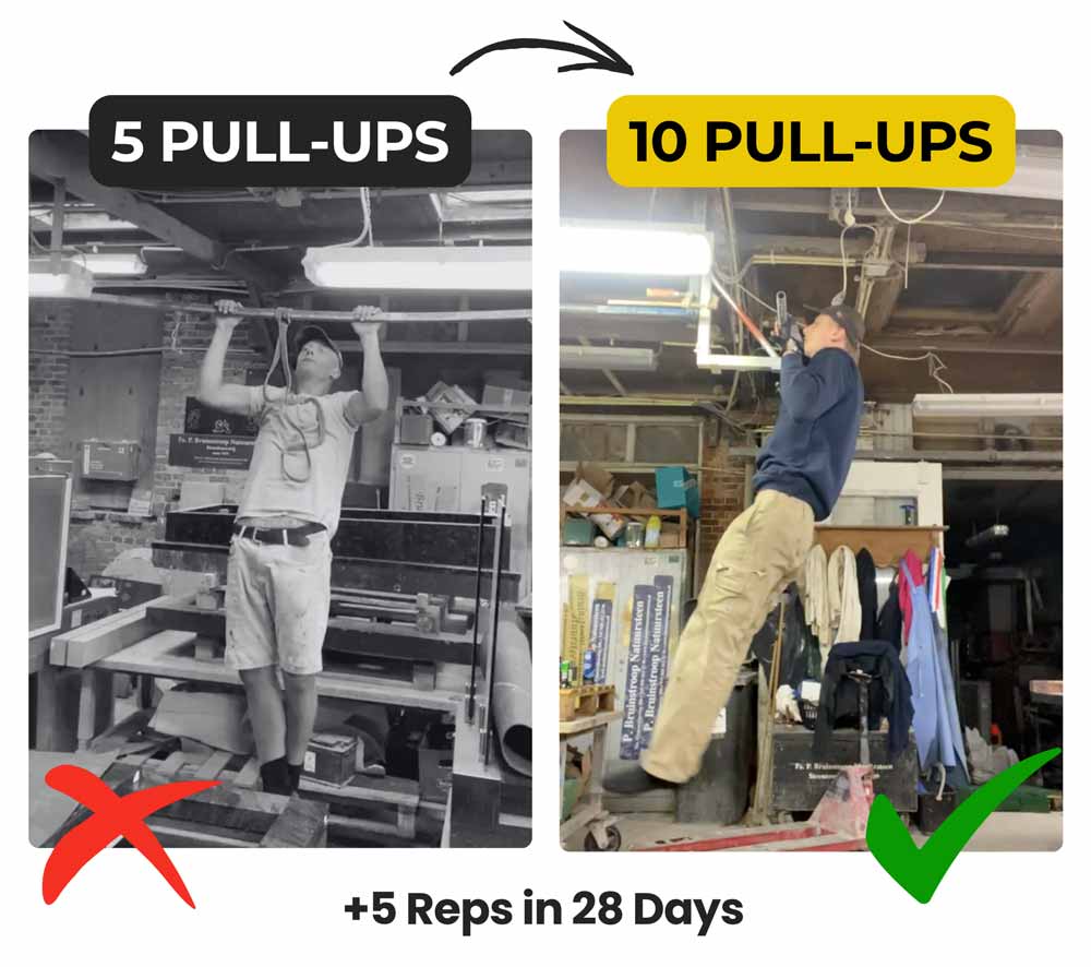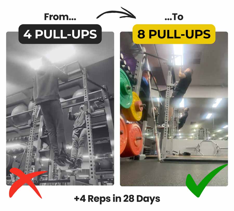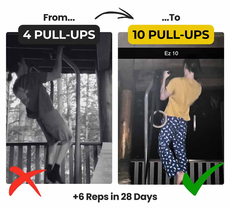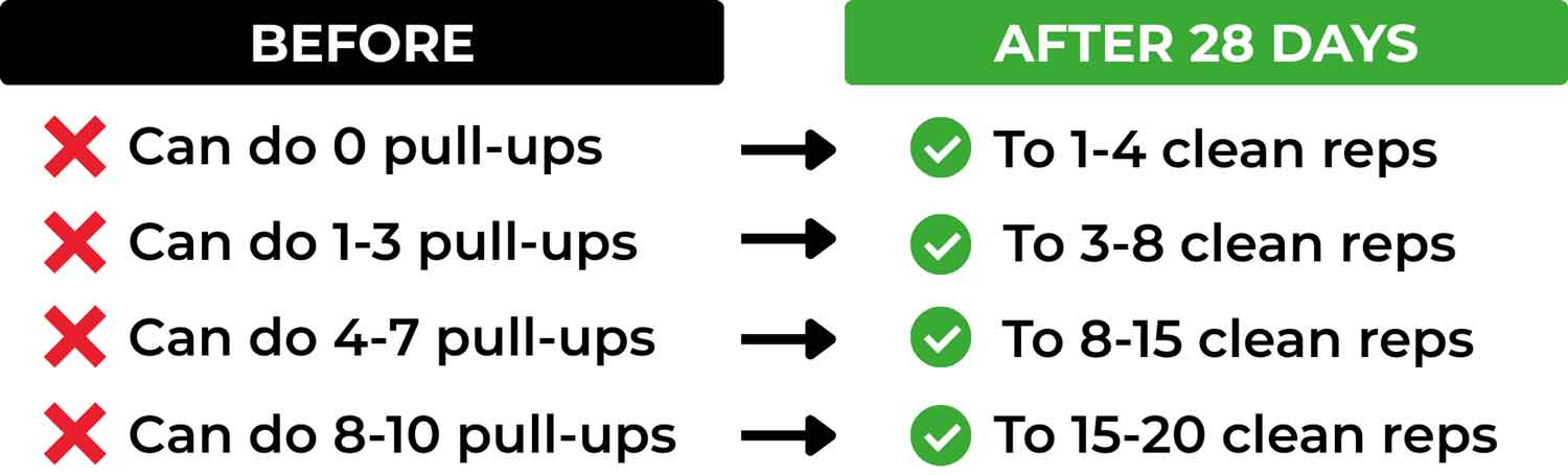 Whether you’re aiming for your 1st rep or pushing toward 20+, this method adapts to your current level and gives you everything you need to break through – in just 28 days.