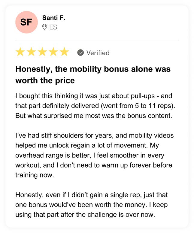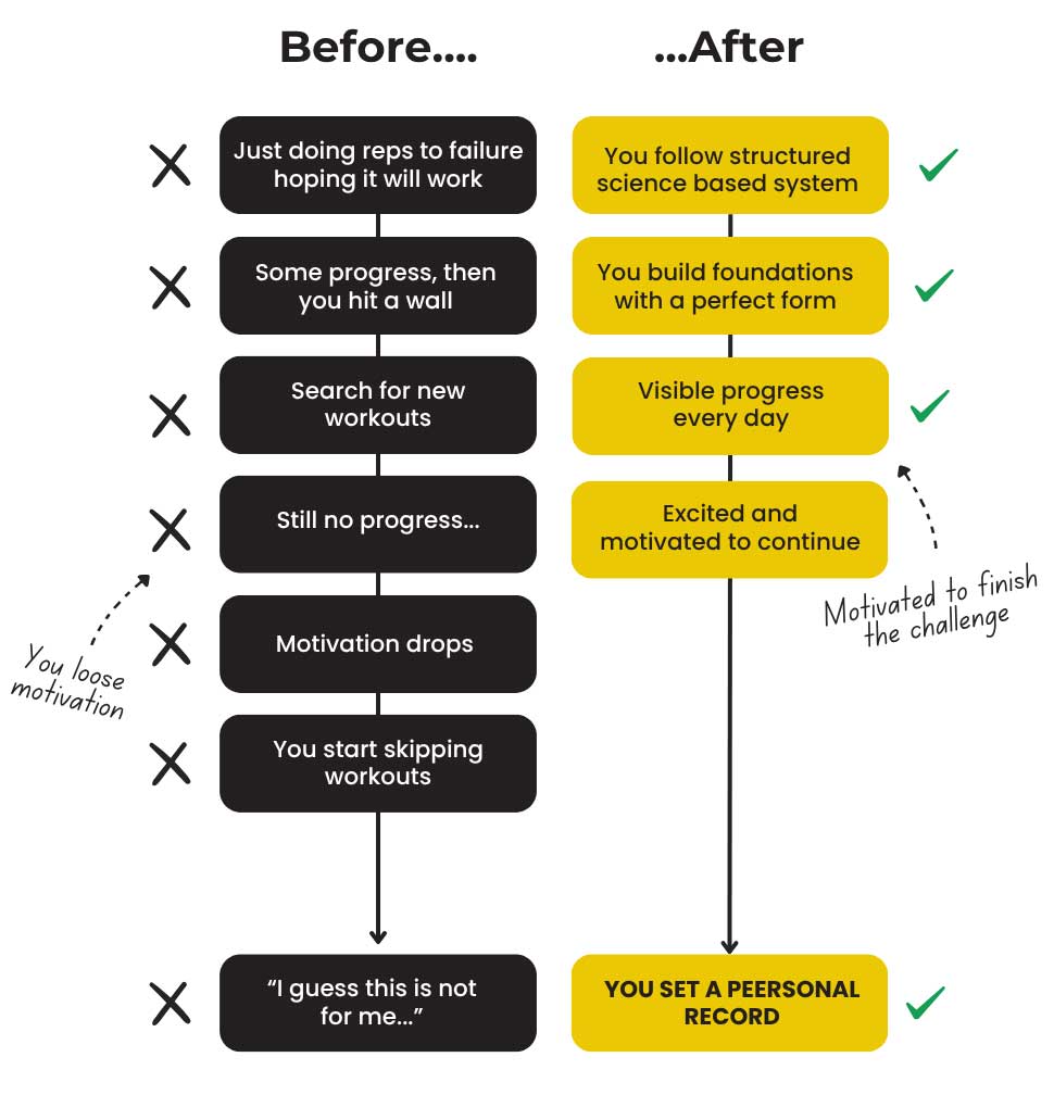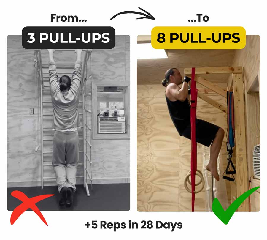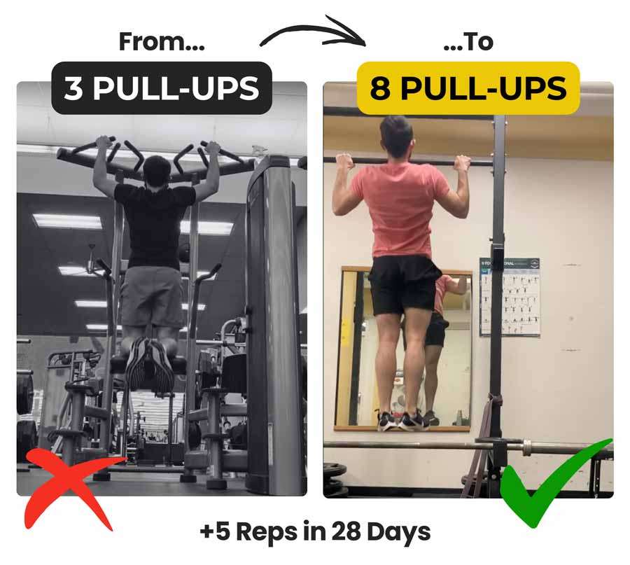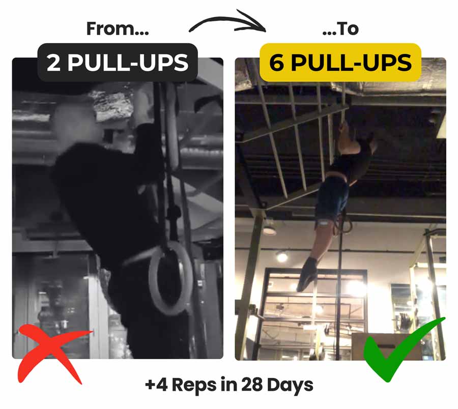 Whether you’re aiming for your 1st rep or pushing toward 20+, this method adapts to your current level and gives you everything you need to break through – in just 28 days.