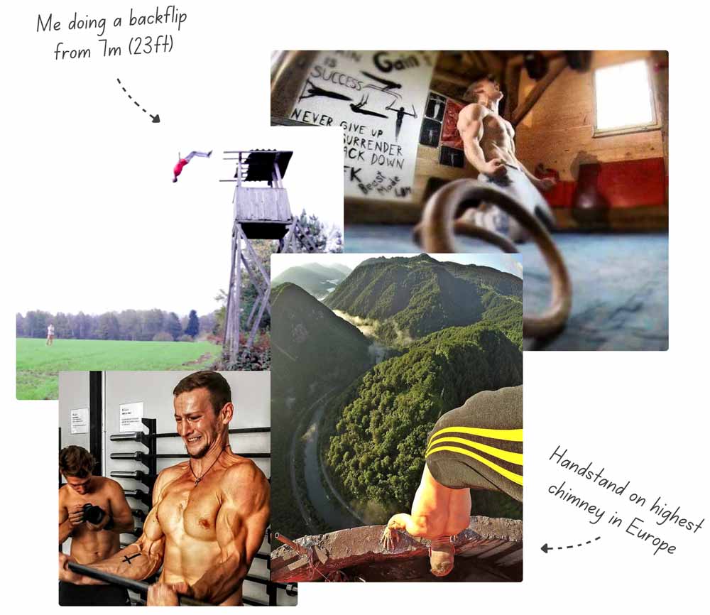 People see the viral videos now – flips from 7m, crazy handstands, front levers, muscle-ups, weighted pull-ups with 90+ kilos…